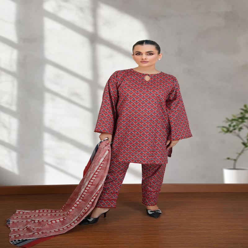 ডিজিটাল প্রিন্টেড লন টপ-এর সূক্ষ্ম নকশা ও দৃষ্টিনন্দন রঙ আপনার লুকে যোগ করবে এক বিশেষ উজ্জ্বলতা। এর সাথে মিলিয়ে থাকা ডিজিটাল প্রিন্টেড লন দোপাট্টা এবং প্রিন্টেড ক্যামব্রিক ট্রাউজার ফ্যাব্রিক একে করে তুলেছে একেবারে সম্পূর্ণ ও স্টাইলিশ একটি পোশাক।