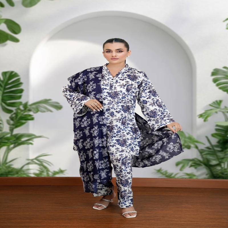 ডিজিটাল প্রিন্টেড লন টপ-এর সূক্ষ্ম নকশা ও দৃষ্টিনন্দন রঙ আপনার লুকে যোগ করবে এক বিশেষ উজ্জ্বলতা। এর সাথে মিলিয়ে থাকা ডিজিটাল প্রিন্টেড লন দোপাট্টা এবং প্রিন্টেড ক্যামব্রিক ট্রাউজার ফ্যাব্রিক একে করে তুলেছে একেবারে সম্পূর্ণ ও স্টাইলিশ একটি পোশাক।