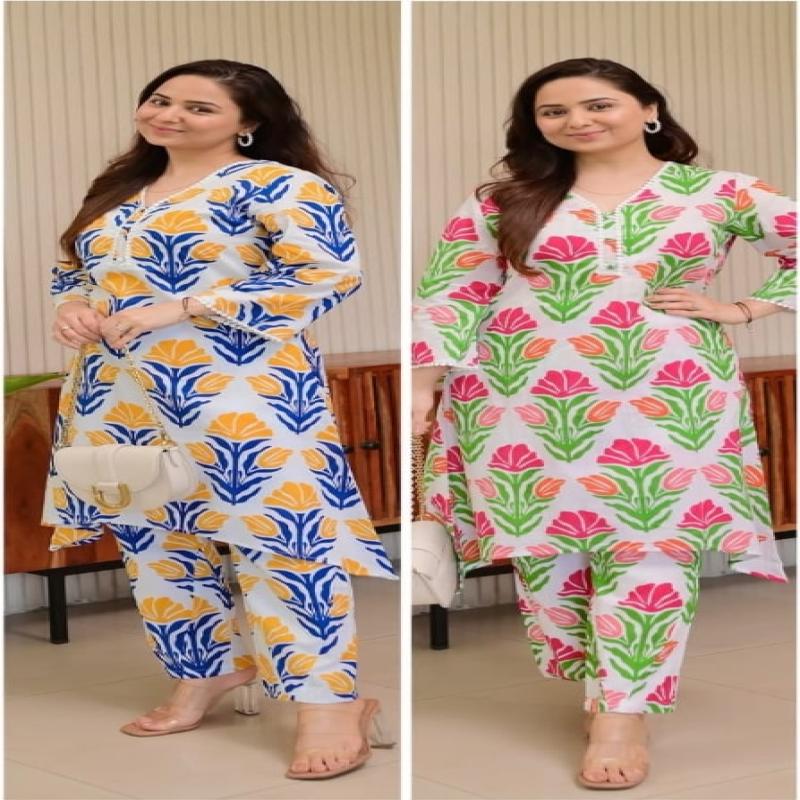 Two Piece Stylish Printed Kurti with Matching Pants
